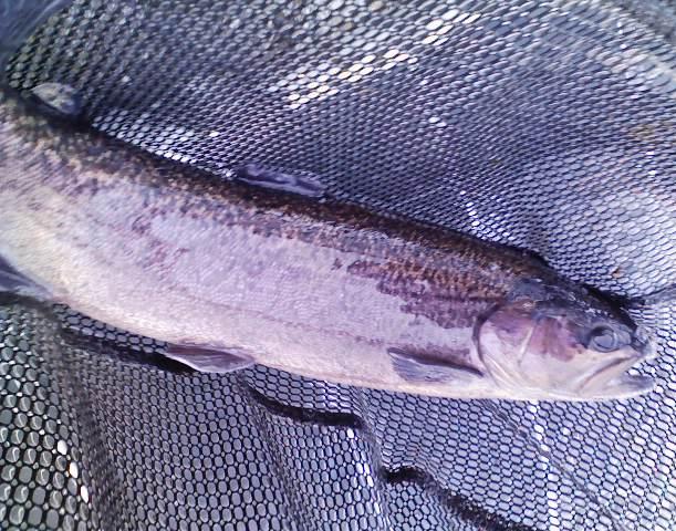 結局、桜色っぽいスプーンに替えて何匹か釣れる。