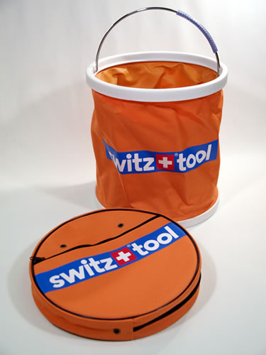 20年以上前に使っていた折りたたみバケツは、なんだか分厚いキャンパス地を縫い合わせたようなものだったが、これは内側がビニールコーティングしてあって、とても実用的。