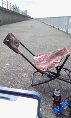 上州屋で買った茶色のカモフラージュ柄のフィッシングチェアーの野郎の足が折れとるがねっ!!(名古屋風味)